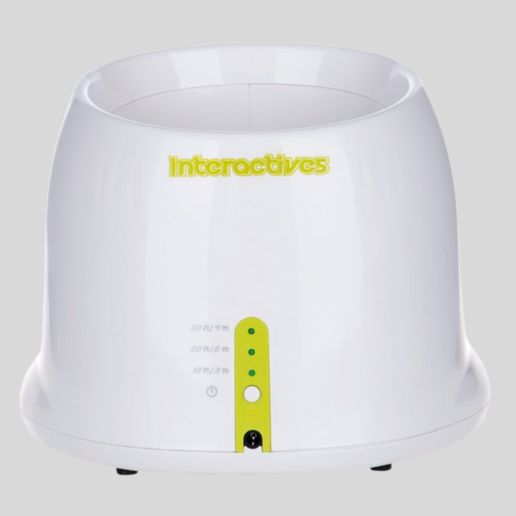 Adjustable range settings let you customize the launch distance (approx. 3–9 meters) to suit your dog's needs
